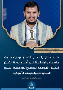 أبرز نقاط الدرس الحادي والعشرون للسيد القائد عبدالملك بدرالدين الحوثي من وصية الإمام علي لابنه الحسن عليهما السلام يوليو 16, 2023 FacebookTwitterTelegramWhatsApp