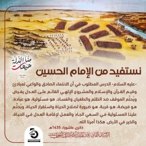 نستفيد من الإمام الحسين “عليه السلام” الدرس المطلوب في الانتماء الصادق والواعي لمبادئ وقيم القرآن والإسلام والمشروع الإلهي يوليو 27, 2023 FacebookTwitterTelegramWhatsApp