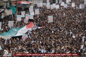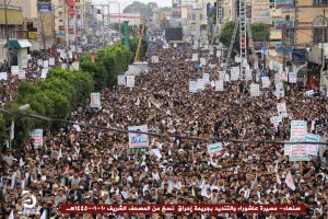 مسيرة حاشدة بالعاصمة صنعاء إحياءً لذكرى عاشوراء والتنديد بجريمة إحراق نسخ المصحف الشريف 10-01-1445هـ يوليو 28, 2023 FacebookTwitterTelegramWhatsApp