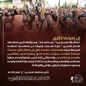 إن إحياءنا ذكرى استشهاد الإمام زيد “عليه السلام” لاعتبارات متعددة أغسطس 10, 2023 FacebookTwitterTelegramWhatsApp