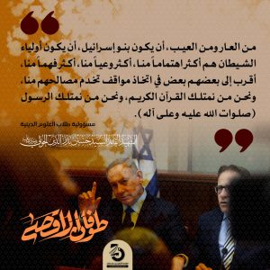 من العار ومن العيب, أن يكون بنو إسرائيل، أن يكون أولياء الشيطان أكثر اهتماماً ووعياً وفهماً منا نحن المسلمين أكتوبر 27, 2023 FacebookTwitterTelegramWhatsApp