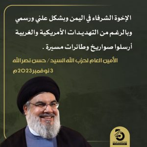 الإخوة الشرفاء في اليمن أرسلوا صواريخ وطائرات مسيرة بشكل علني ورسمي نوفمبر 4, 2023 FacebookTwitterTelegramWhatsApp