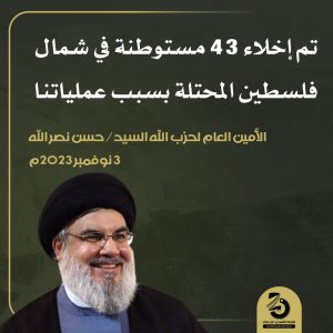 إخلاء 43 مستوطنة في شمال فلسطين المحتلة بسبب عملياتنا