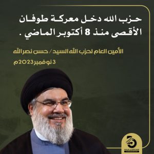 🔴 حزب الله دخل معركة طوفان الأقصى منذ ثمانية أكتوبر الماضي نوفمبر 5, 2023 FacebookTwitterTelegramWhatsApp