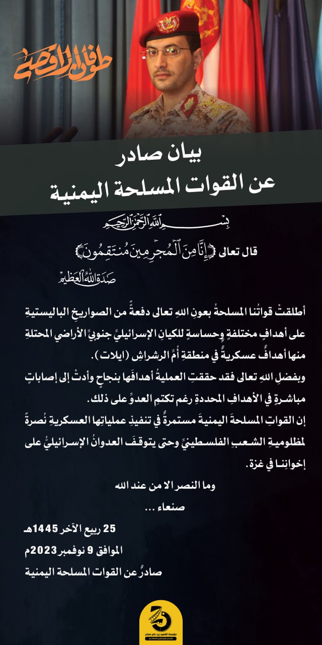 🔴📷 بيان صادر عن القوات المسلحة اليمنية 09-11-2023