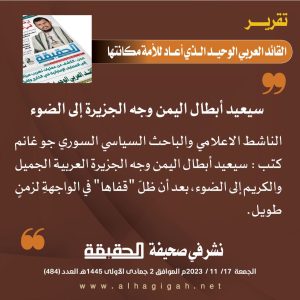 🔴 إنفوجرافيك 4️⃣| القائد العربي الوحيد الذي أعاد للأمة مكانتها نوفمبر 19, 2023 FacebookTwitterTelegramWhatsApp