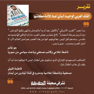 🔴 إنفوجرافيك 5️⃣| القائد العربي الوحيد الذي أعاد للأمة مكانتها نوفمبر 19, 2023 FacebookTwitterTelegramWhatsApp