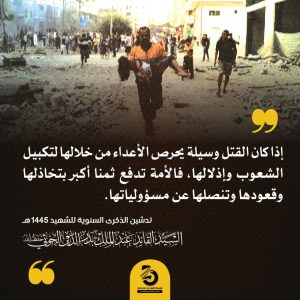 🔴 إذا كان القتل وسيلة يحرص الأعداء من خلالها لتكبيل الشعوب وإذلالها، فالأمة تدفع ثمنا أكبر بتخاذلها وقعودها وتنصلها نوفمبر 22, 2023 FacebookTwitterTelegramWhatsApp