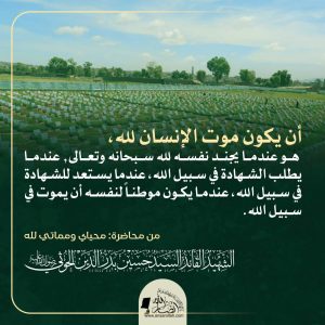 🟢أن يكون موت الإنسان لله، هو عندما يجند نفسه لله سبحانه وتعالى, عندما يطلب الشهادة في سبيل الله نوفمبر 28, 2023 FacebookTwitterTelegramWhatsApp