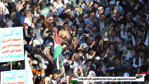 حشود جماهيرية كبيرة في مسيرة (مستمرون في نصرة #غزة وجاهزون لكل الخيارات) في باب اليمن بالعاصمة #صنعاء 25-05-1445 | 08-12-2023 ديسمبر 8, 2023 FacebookTwitterTelegramWhatsApp