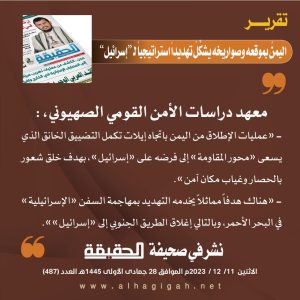 🔴تقرير | 3️⃣ اليمن بموقعه وصواريخه يشكل تهديداً استراتيجياً لـ #إسرائيل #صحيفة_الحقيقة ديسمبر 17, 2023 FacebookTwitterTelegramWhatsApp