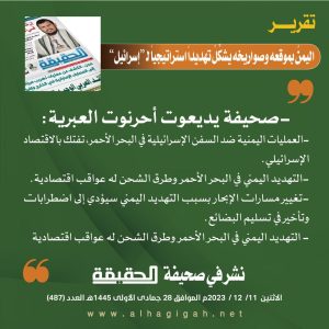🔴تقرير | 6️⃣1️⃣ اليمن بموقعه وصواريخه يشكل تهديداًاستراتيجياً لإسرائيل #صحيفة_الحقيقة ديسمبر 18, 2023 FacebookTwitterTelegramWhatsApp