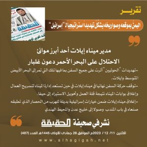 🔴تقرير| 8️⃣1️⃣ اليمن بموقعه وصواريخه يشكل تهديداًاستراتيجياً لإسرائيل #صحيفة_الحقيقة ديسمبر 18, 2023 FacebookTwitterTelegramWhatsApp
