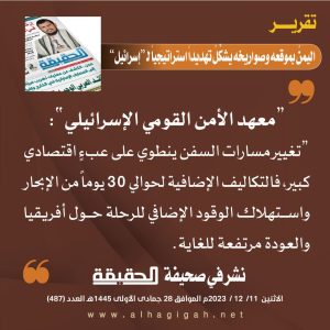 🔴تقرير| 1️⃣2️⃣اليمن بموقعه وصواريخه يشكل تهديداًاستراتيجياً لإسرائيل #صحيفة_الحقيقة ديسمبر 18, 2023 FacebookTwitterTelegramWhatsApp