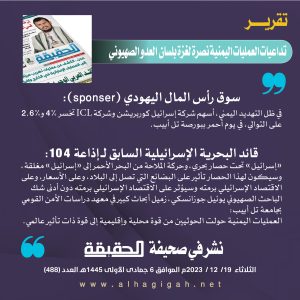🔴إنفوجرافيك 3️⃣ #إسرائيل تحت حصار بحري وحركة الملاحة من البحر الأحمر إلى إسرائيل مغلقة #تقرير_صحيفة_الحقيقة ديسمبر 19, 2023 FacebookTwitterTelegramWhatsApp