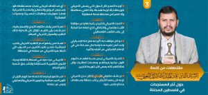🔴إنفوجرافيك | 3️⃣ مقتطفات من كلمة السيد القائد عبدالملك بدر الدين الحوثي حول أخر المستجدات في فلسطين المحتلة 07جمادى الأخرة 1445هـ | 20 ديسمبر 2023م ديسمبر 20, 2023 FacebookTwitterTelegramWhatsApp