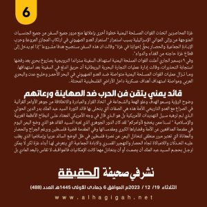 🔴ملف 6️⃣ اليمن يعمق المأزق الصهيوني ويواصل الانتصار لفلسطين #صحيفة_الحقيقة httpst.mealhagigahnet ديسمبر 23, 2023 FacebookTwitterTelegramWhatsApp