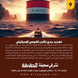 🔴ملف 9️⃣ اليمن يعمق المأزق الصهيوني ويواصل الانتصار لفلسطين #صحيفة_الحقيقة httpst.mealhagigahnet ديسمبر 23, 2023 FacebookTwitterTelegramWhatsApp