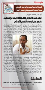 🔴 متابعات| اليمن بقائدها الحوثي وقف وقفه تاريخية مع فلسطين وقضى على الإرهاب النفسي الأمريكي #صحيفة_الحقيقة ديسمبر 24, 2023 FacebookTwitterTelegramWhatsApp
