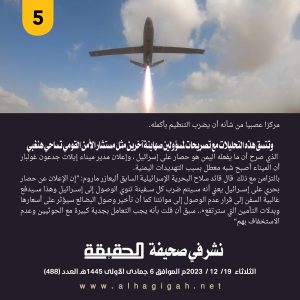 🔴 تقرير | 5️⃣ خلاصة ما ورد في الإعلام المعادي عن فاعلية العمليات اليمنية #صحيفة_الحقيقة ديسمبر 24, 2023 FacebookTwitterTelegramWhatsApp