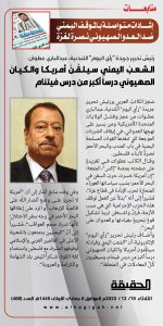 🔴 الشعب اليمني سيلقن أمريكا والكيان الصهيوني درساً أكبر من درس فيتنام #صحيفة_الحقيقة ديسمبر 24, 2023 FacebookTwitterTelegramWhatsApp