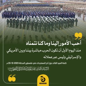 🔴أحب الأمور إلينا وما كنا نتمناه منذ اليوم الأول أن تكون الحرب مباشرة بيننا وبين الأمريكي والإسرائيلي وليس عبر عملائه يناير 8, 2024 FacebookTwitterTelegramWhatsApp