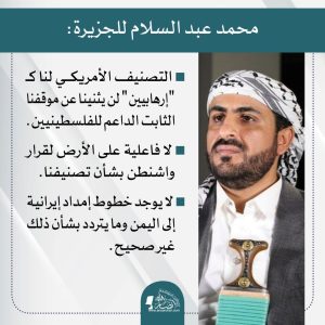 🔴 التصنيف الأمريكي لنا كـ “إرهابيين” لن يثنينا عن موقفنا الثابت الداعم للفلسطينيين يناير 17, 2024 FacebookTwitterTelegramWhatsApp