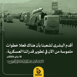 🔴أقدم البشرى لشعبنا بأن هناك فعلا خطوات ملموسة من الآن في تطوير قدراتنا العسكرية يناير 27, 2024 FacebookTwitterTelegramWhatsApp