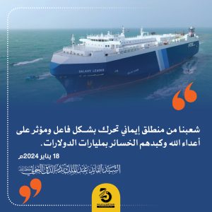 🔴شعبنا من منطلق إيماني تحرك بشكل فاعل ومؤثر على أعداء الله وكبدهم الخسائر بمليارات الدولارات يناير 30, 2024 FacebookTwitterTelegramWhatsApp