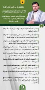 🟢إنفوجرافيك 4️⃣ مقتطفات من كلمة قائد الثورة السيد عبدالملك بدرالدين الحوثي، بمناسبة الذكرى السنوية للشهيد القائد 1445هـ فبراير 6, 2024 FacebookTwitterTelegramWhatsApp