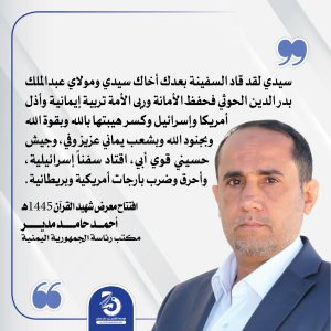 🟢سيدي لقد قاد السفينة بعدك أخاك سيدي ومولاي عبدالملك بدر الدين الحوثي فحفظ الأمانة #مدير_مكتب_رئاسة_الجمهورية_اليمنية #الذكرى_السنوية_للشهيد_القائد1445هـ فبراير 13, 2024 FacebookTwitterTelegramWhatsApp