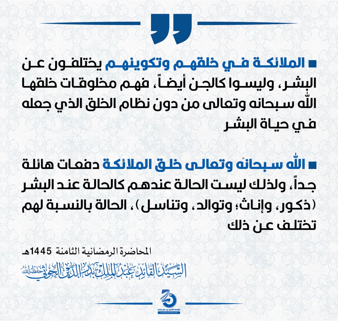 Return to "إنفو جرافيك | مقتطفات من المحاضرة الرمضانية الثامنة للسيد القائد / عبدالملك بدر الدين الحوثي (يحفظه…" الملائكة في خلقهم وتكوينهم يختلفون عن البشر التالي السابق