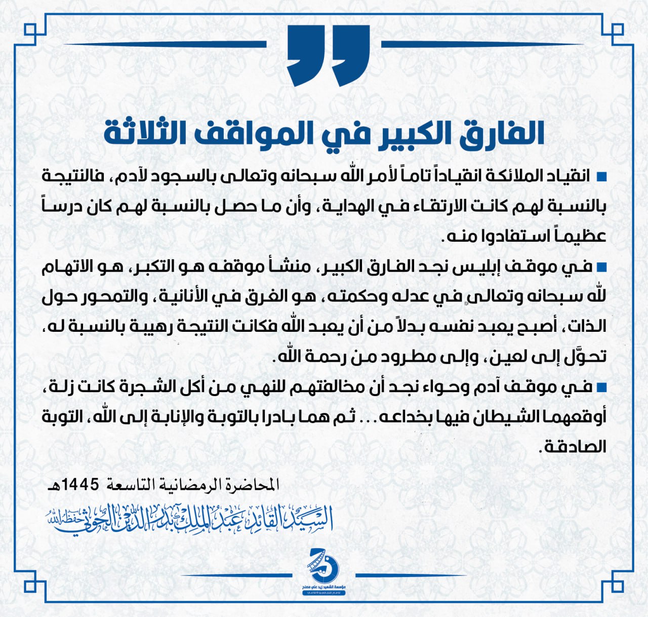 Return to "إنفو جرافيك| مقتطفات من المحاضرة الرمضانية التاسعة للسيد القائد / عبدالملك بدر الدين الحوثي 10 رمضان…" الفارق الكبير في المواقف الثلاثة التالي السابق
