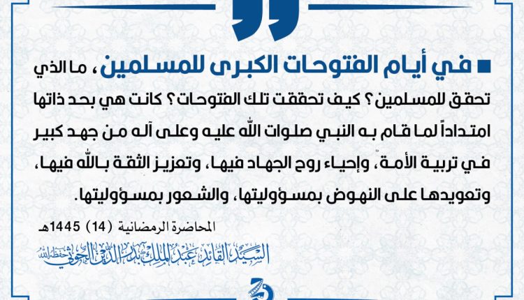 Return to "إنفو جرافيك| مقتطفات من المحاضرة الرمضانية الـ14 للسيد القائد/ عبدالملك بدر الدين الحوثي (يحفظه…" في ايام الفتوحات الكبرى للمسلمين التالي السابق