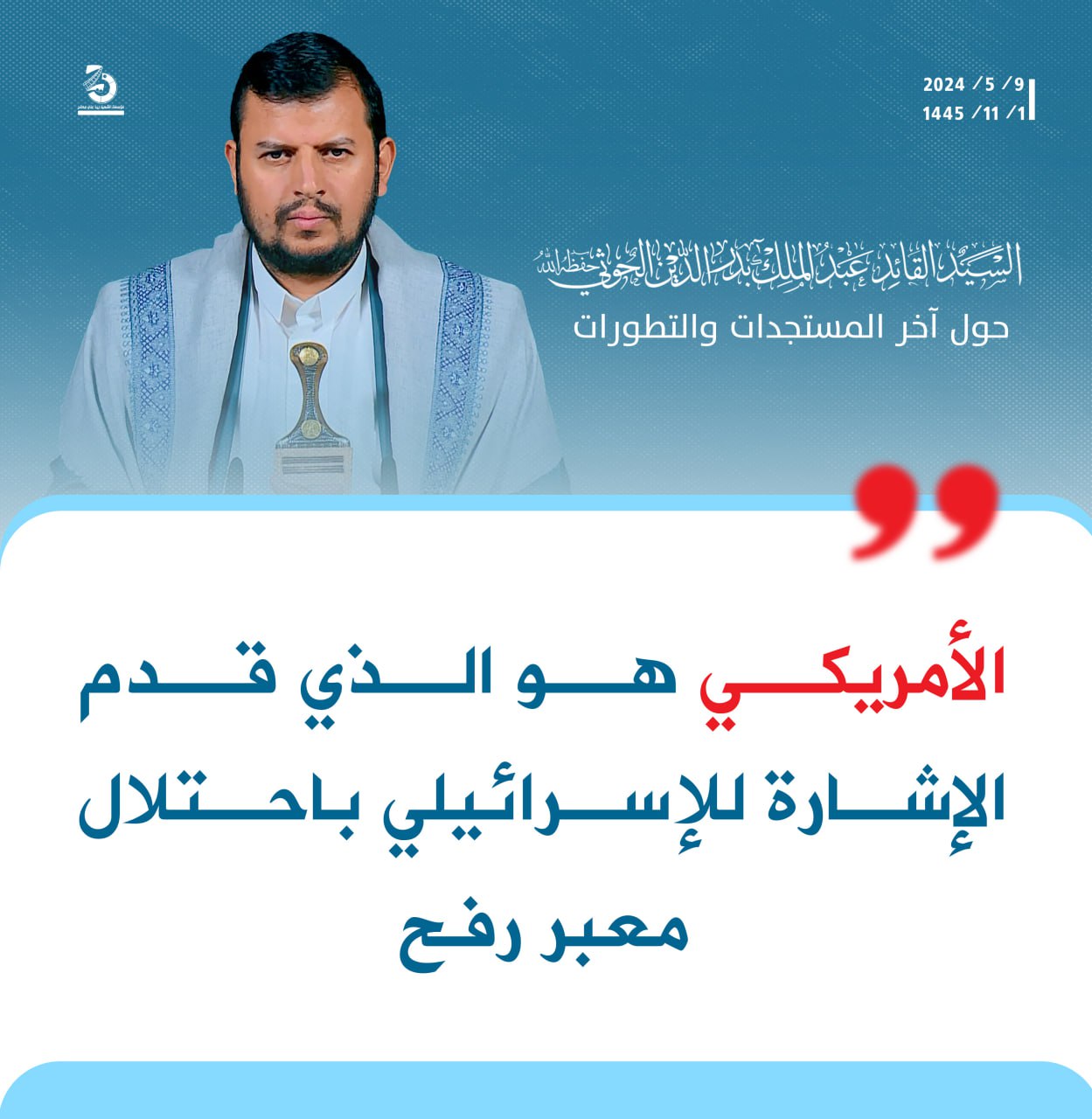Return to "إنفو جرافيك | مقتطفات من كلمة السيد عبدالملك بدر الدين الحوثي ( يحفظه الله ) حول آخر التطورات في غزة…" الأمريكي هو الذي قدم الإشارة للإسرائيلي باحتلال معبر رفح التالي السابق