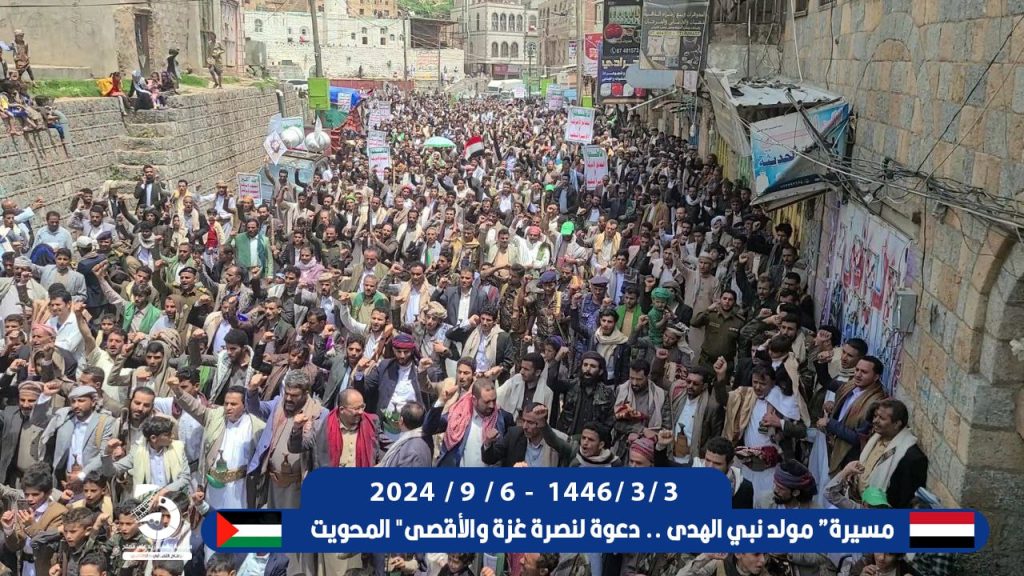 صور | حشود جماهيرية كبيرة بمختلف ساحات #المحافظات في مسيرة “مولد نبي الهدى.. دعوة لنصرة غزة والأقصى” 03 ربيع الأول 1446هـ | 06 سبتمبر 2024م #معركة_الفتح_الموعود_والجهاد_المقدس #المولد_النبوي_الشريف سبتمبر 6, 2024 اليمنطوفان الأقصىغزةفلسطينلستم وحدكممحور المقاومةمسيرات FacebookTwitterTelegramWhatsApp