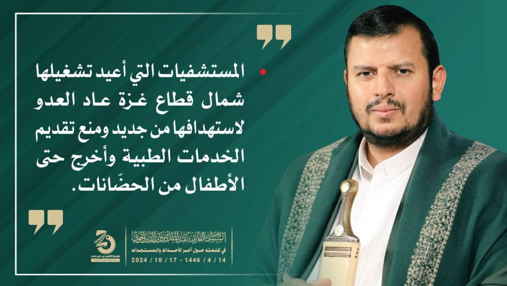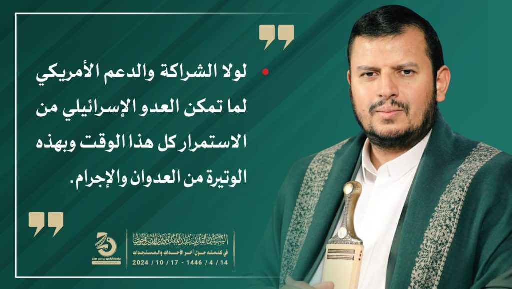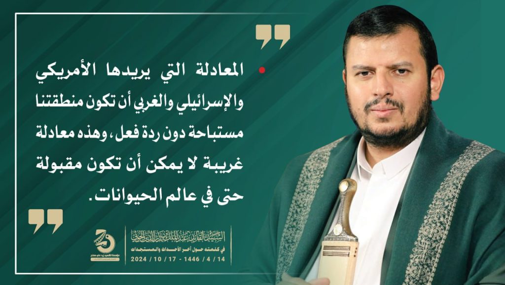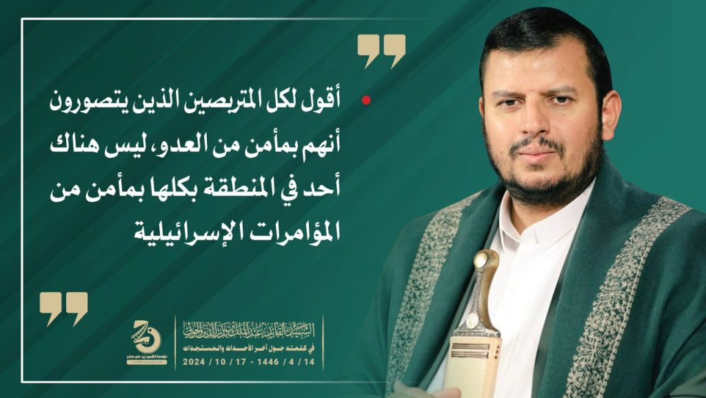 إنفو جرافيك| مقتطفات من كلمة السيد القائد عبدالملك بدرالدين الحوثي (يحفظه الله) حول آخر التطورات والمستجدات 14 ربيع الثاني 1446هـ |17 أكتوبر 2024م أكتوبر 17, 2024 طوفان الأقصىلستم وحدكممحور المقاومة FacebookTwitterTelegramWhatsApp