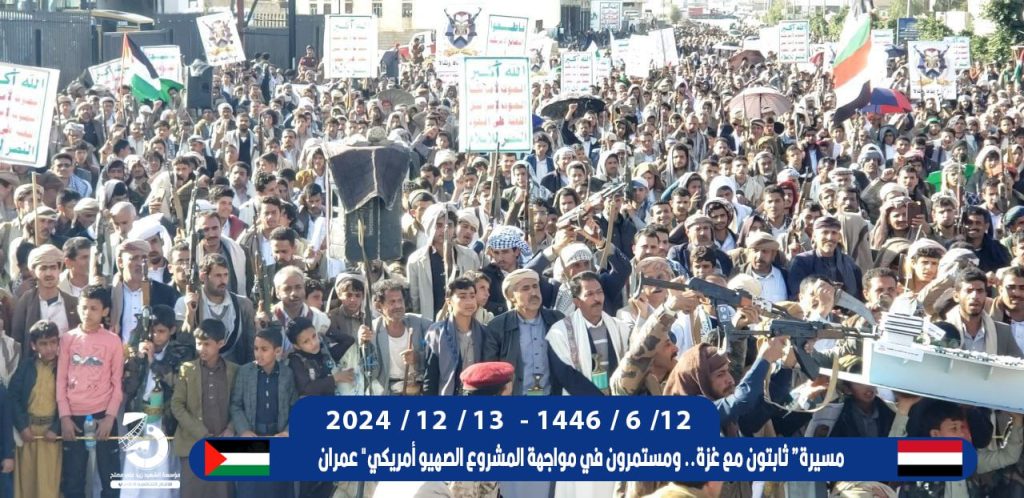 فوتو غرافيك | خروج جماهيري كبير في مختلف المحافظات في مسيرة “ثابتون مع غزة .. ومستمرون في مواجهة المشروع الصهيوأمريكي” 12 جمادى الآخر 1446هـ الموافق 13 ديسمبر 2024م ديسمبر 13, 2024 FacebookTwitterTelegramWhatsApp