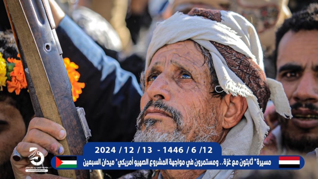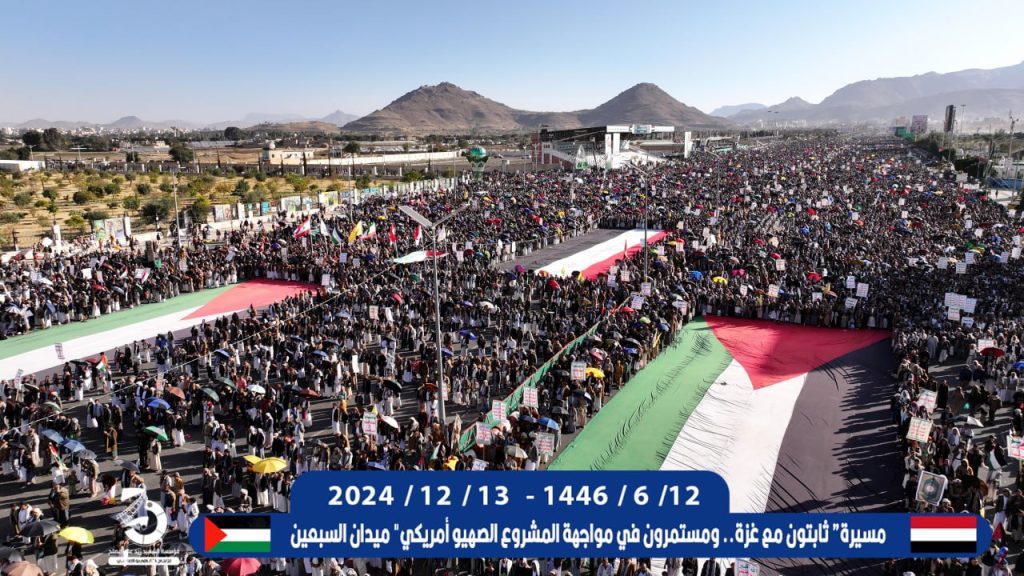 فوتو غرافيك | في ظل صمت عربي وإسلامي مخزي .. يمن الإيمان والحكمة والجهاد يجدد العهد والوعد والوفاء ومستمر في الخروج المليوني الكبير في مسيرة “ثابتون مع غزة.. ومستمرون في مواجهة المشروع الصهيو أمريكي” بميدان السبعين في العاصمة #صنعاء 12-06-1446 | 13-12-2024