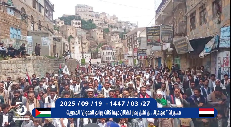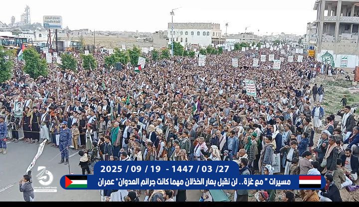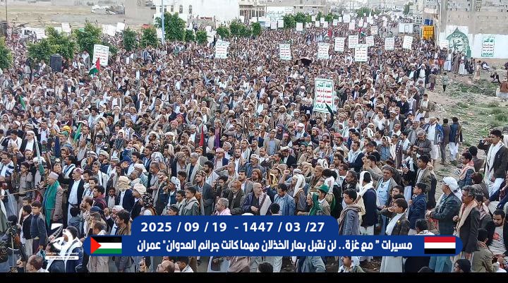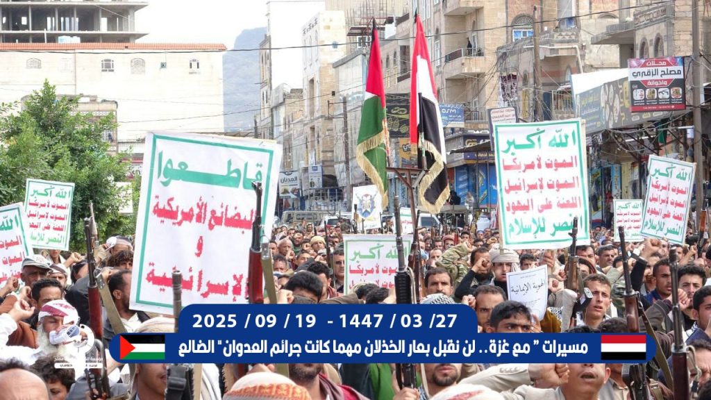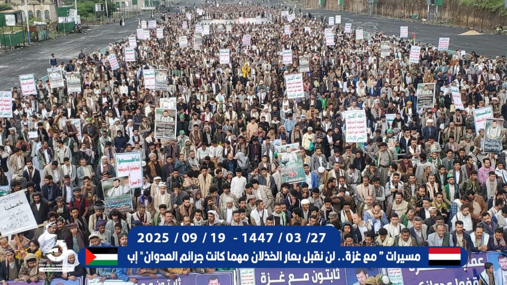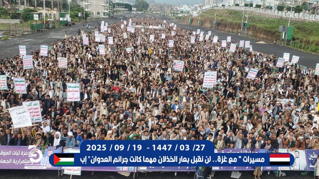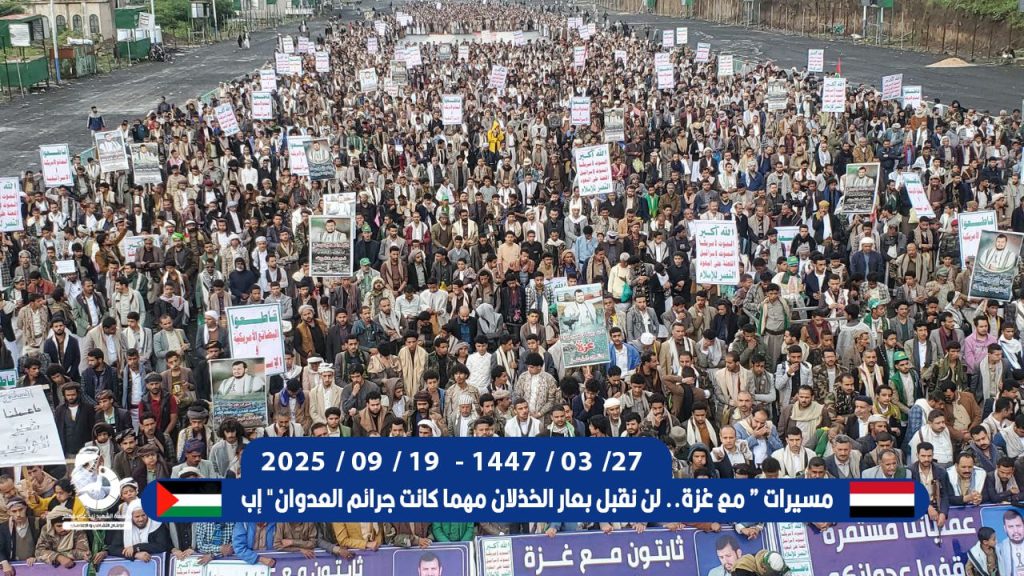 صور| خروج جماهيري كبير وواسع تشهده مختلف محافظات الجمهورية في مسيرات “مع غزة.. لن نقبل بعار الخذلان مهما كانت جرائم العدوان” 27 ربيع الأول 1447هـ | 19 سبتمبر 2025م