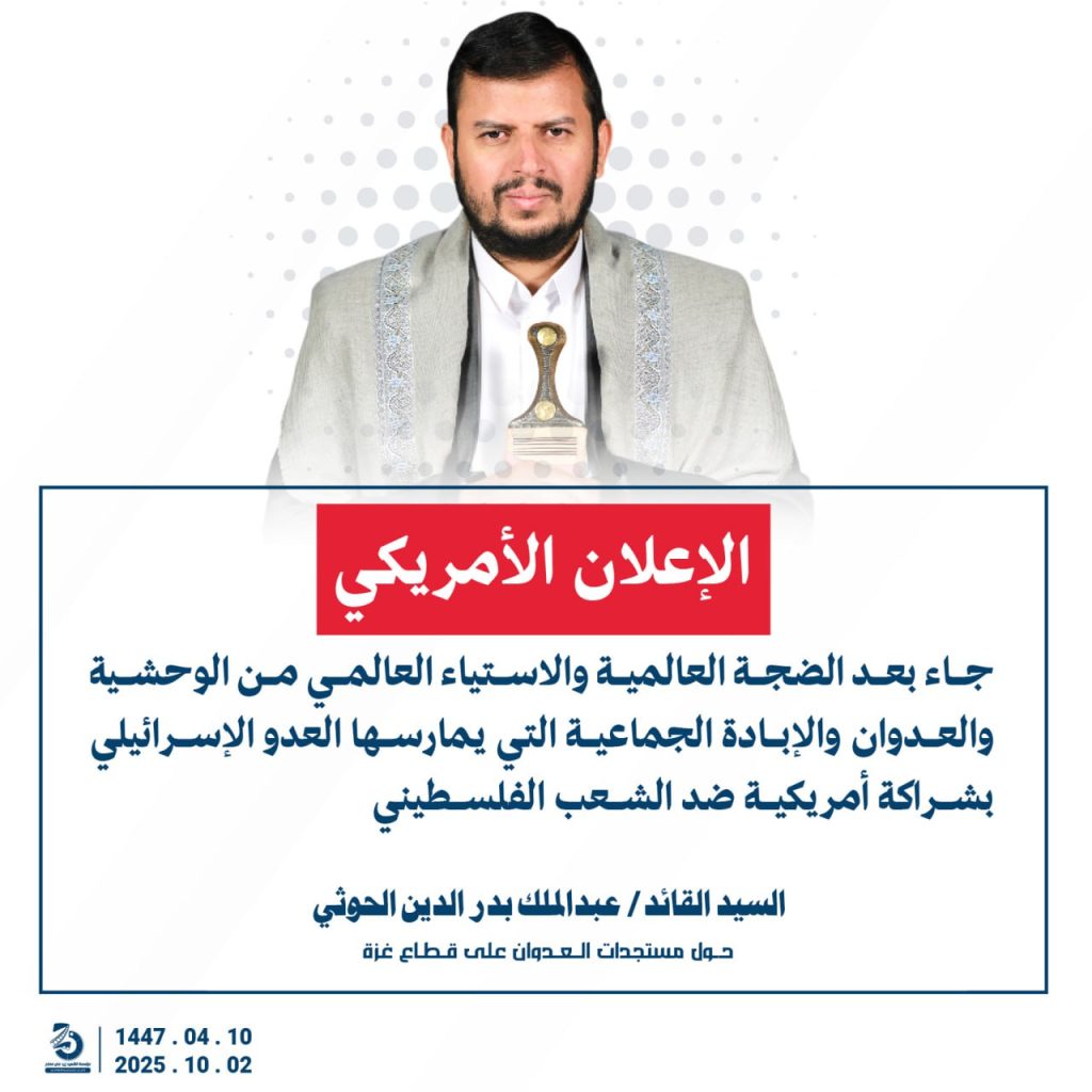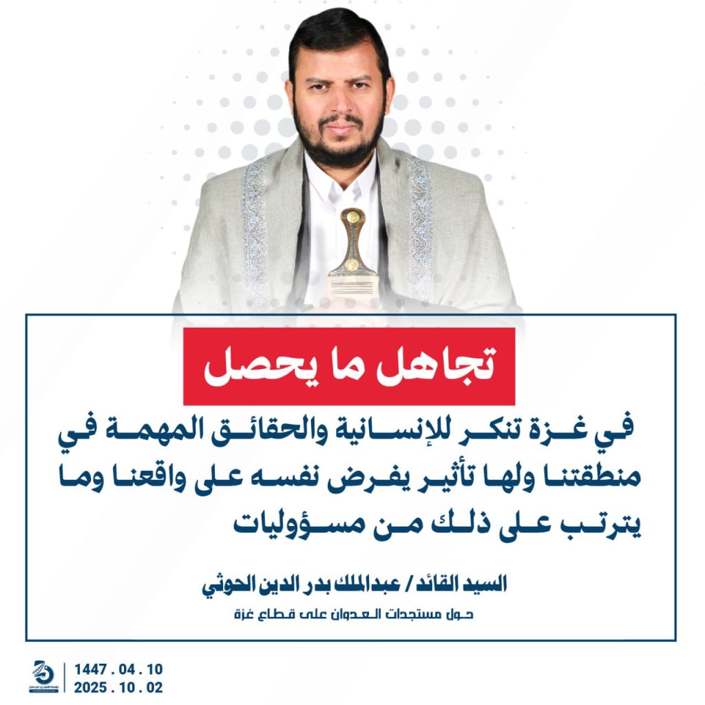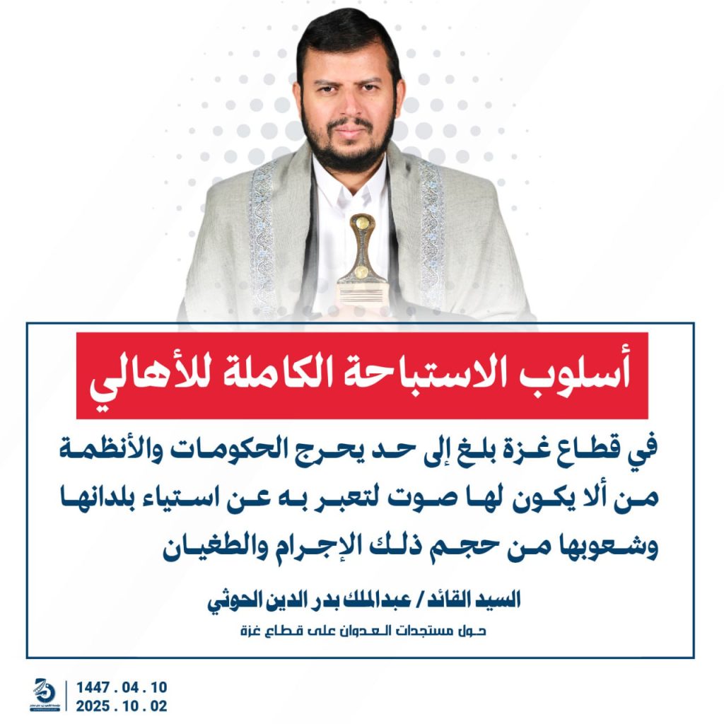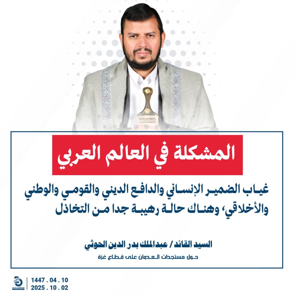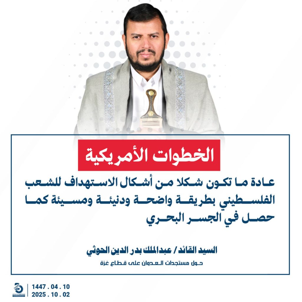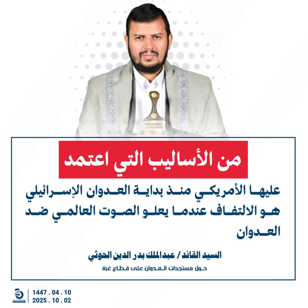 Image مقتطفات من كلمة السيد القائد عبدالملك بدرالدين الحوثي حول مستجدات العدوان على قطاع غزة والتطورات الإقليمية والدولية 10 ربيع الثاني 1447هـ 02 أكتوبر 2025م أكتوبر 2, 2025 العدو الاسرائيلياليمنامريكاغزةفلسطينلستم وحدكممعادلة الاستباحة FacebookTwitterTelegramWhatsApp