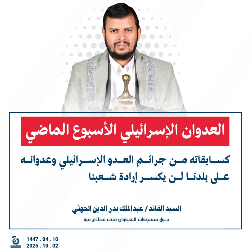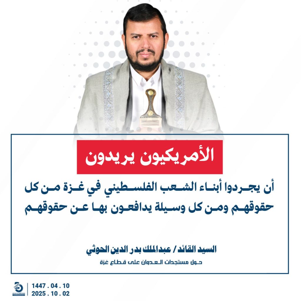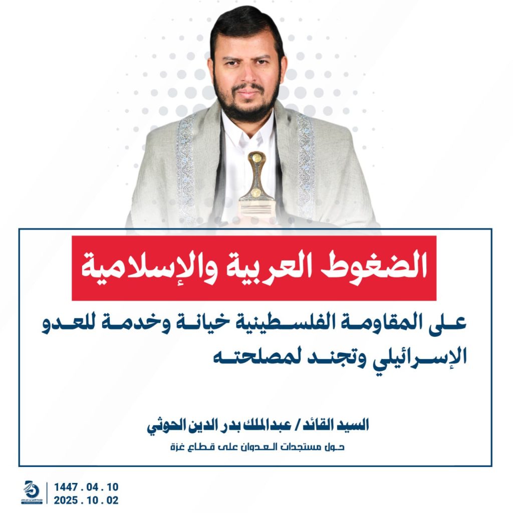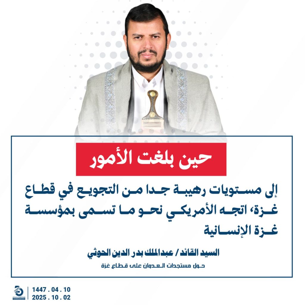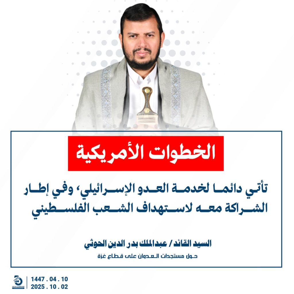 Image مقتطفات من كلمة السيد القائد عبدالملك بدرالدين الحوثي حول مستجدات العدوان على قطاع غزة والتطورات الإقليمية والدولية 10 ربيع الثاني 1447هـ 02 أكتوبر 2025م أكتوبر 2, 2025 العدو الاسرائيلياليمنامريكاغزةفلسطينلستم وحدكممعادلة الاستباحة FacebookTwitterTelegramWhatsApp