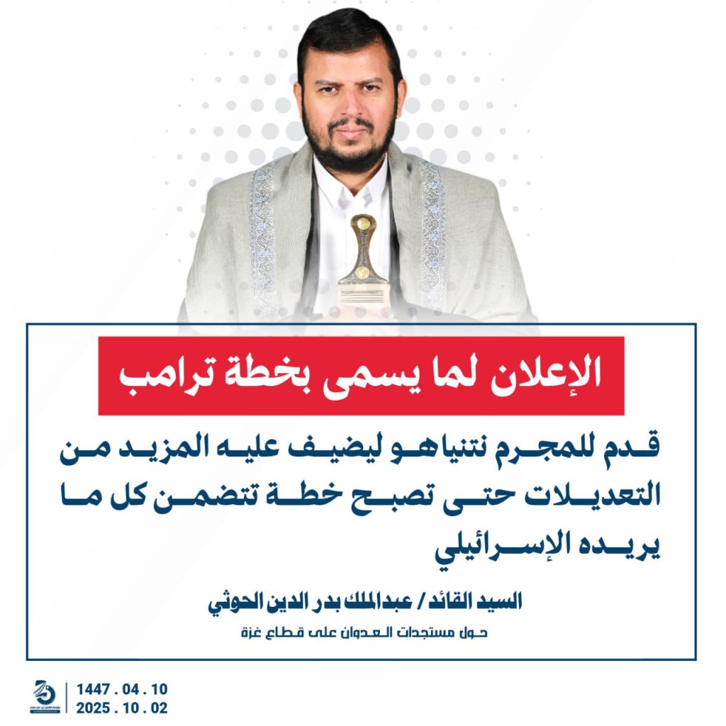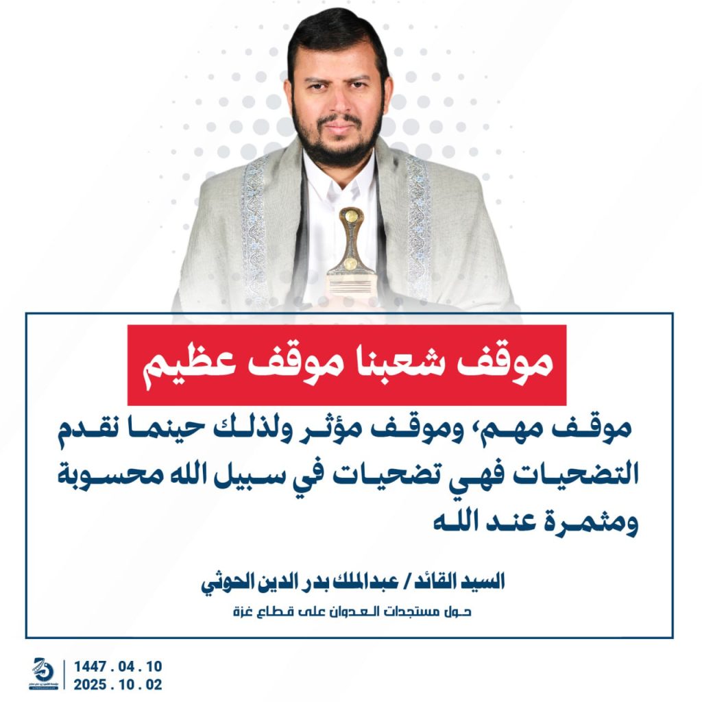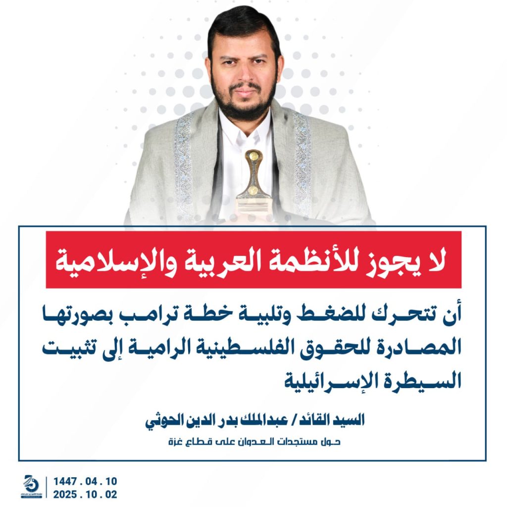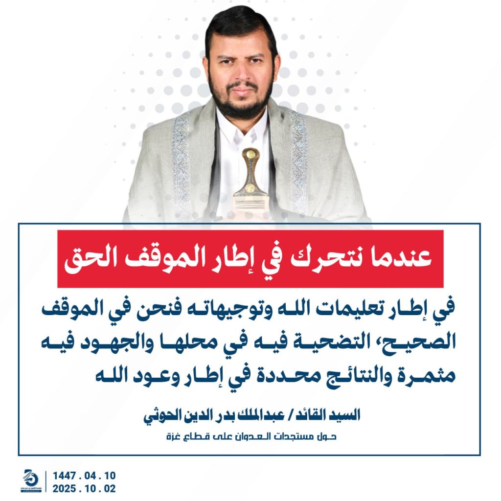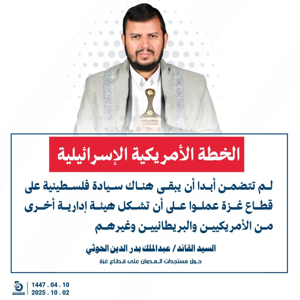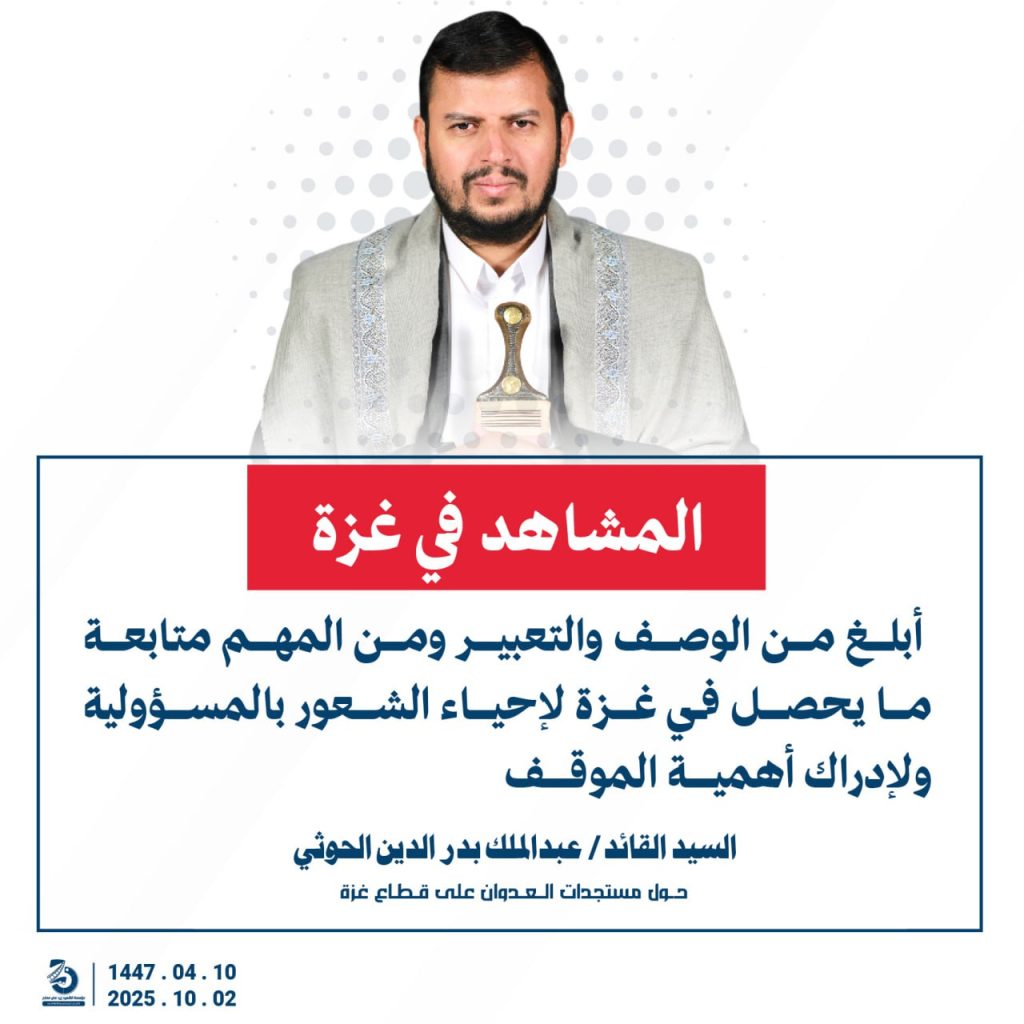Image مقتطفات من كلمة السيد القائد عبدالملك بدرالدين الحوثي حول مستجدات العدوان على قطاع غزة والتطورات الإقليمية والدولية 10 ربيع الثاني 1447هـ 02 أكتوبر 2025م أكتوبر 2, 2025 العدو الاسرائيلياليمنامريكاغزةفلسطينلستم وحدكممعادلة الاستباحة FacebookTwitterTelegramWhatsApp