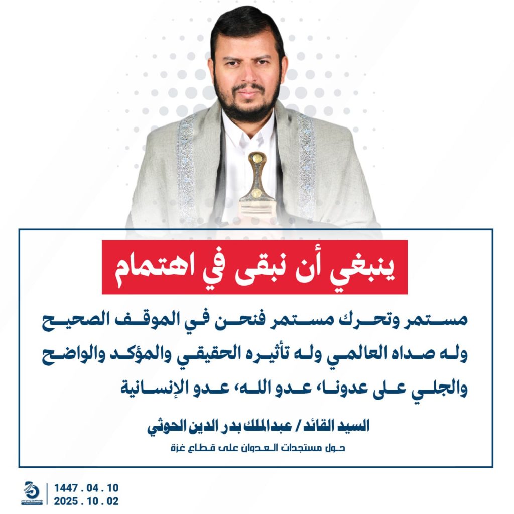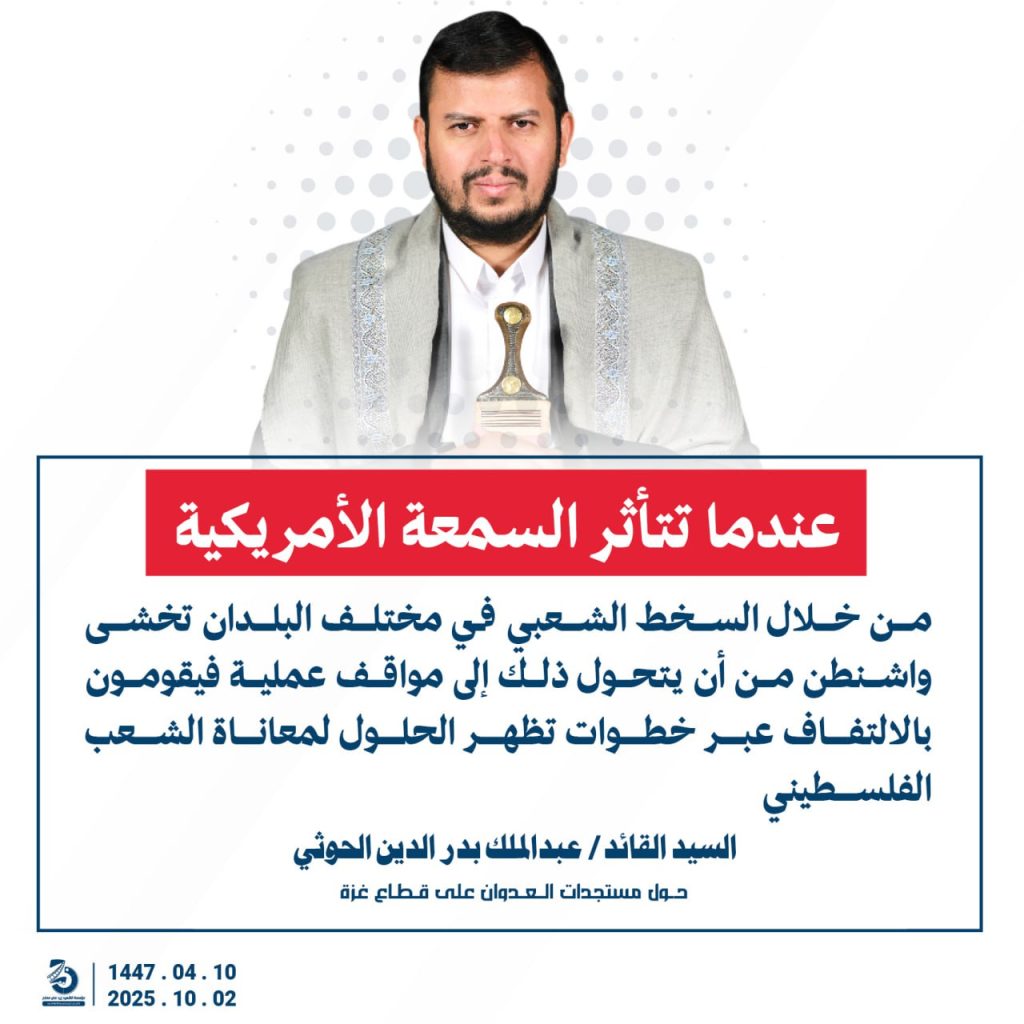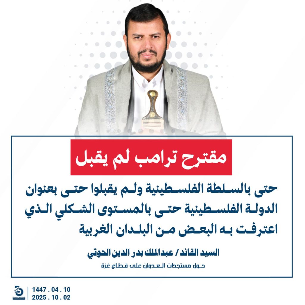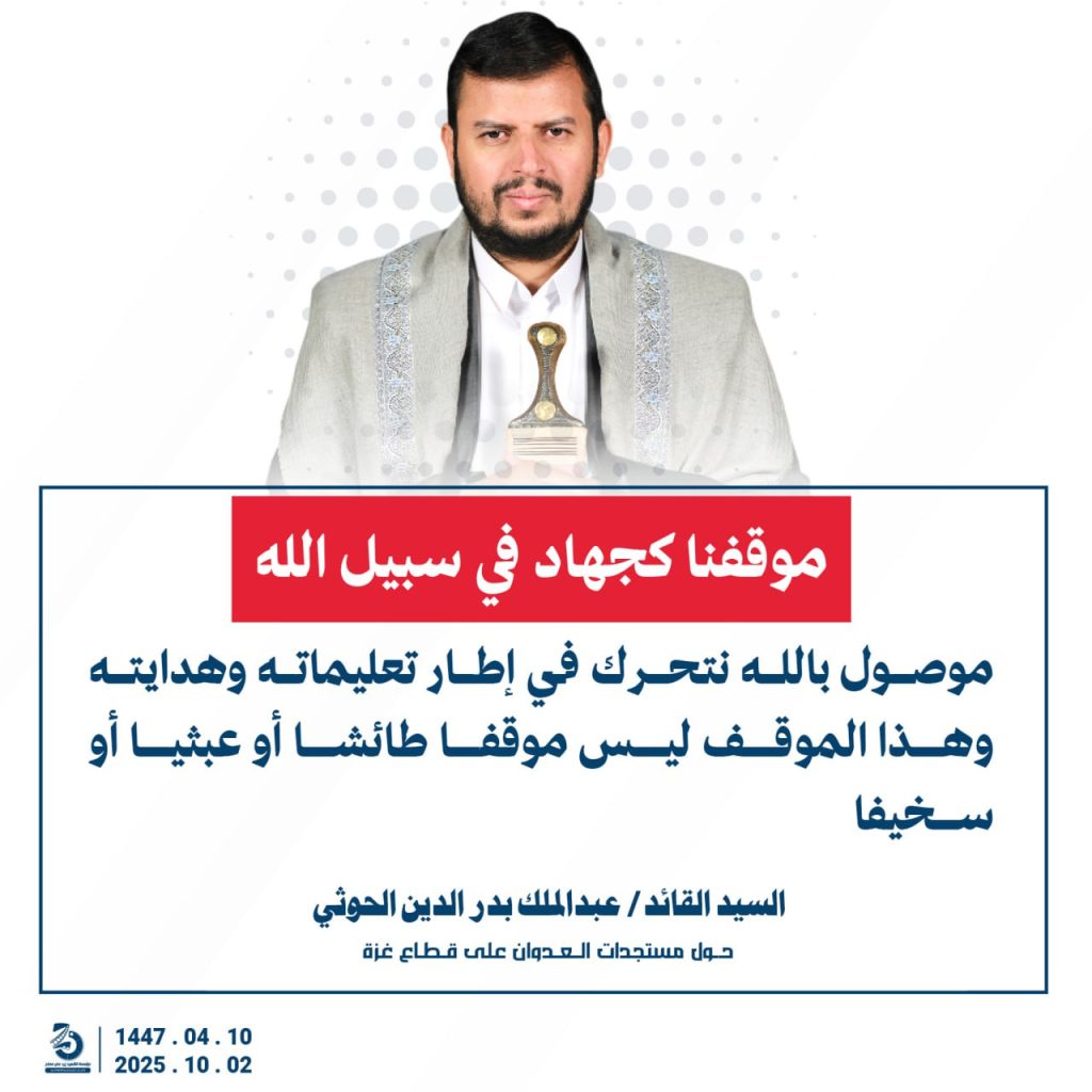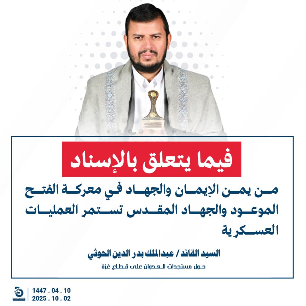 Image مقتطفات من كلمة السيد القائد عبدالملك بدرالدين الحوثي حول مستجدات العدوان على قطاع غزة والتطورات الإقليمية والدولية 10 ربيع الثاني 1447هـ 02 أكتوبر 2025م أكتوبر 2, 2025 العدو الاسرائيلياليمنامريكاغزةفلسطينلستم وحدكممعادلة الاستباحة FacebookTwitterTelegramWhatsApp