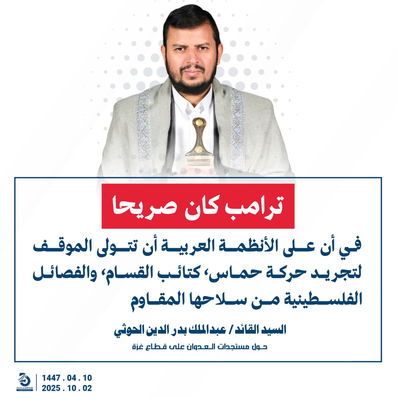 Return to "مقتطفات من كلمة السيد القائد عبدالملك بدرالدين الحوثي حول مستجدات العدوان على قطاع غزة والتطورات…" 17 السابق
