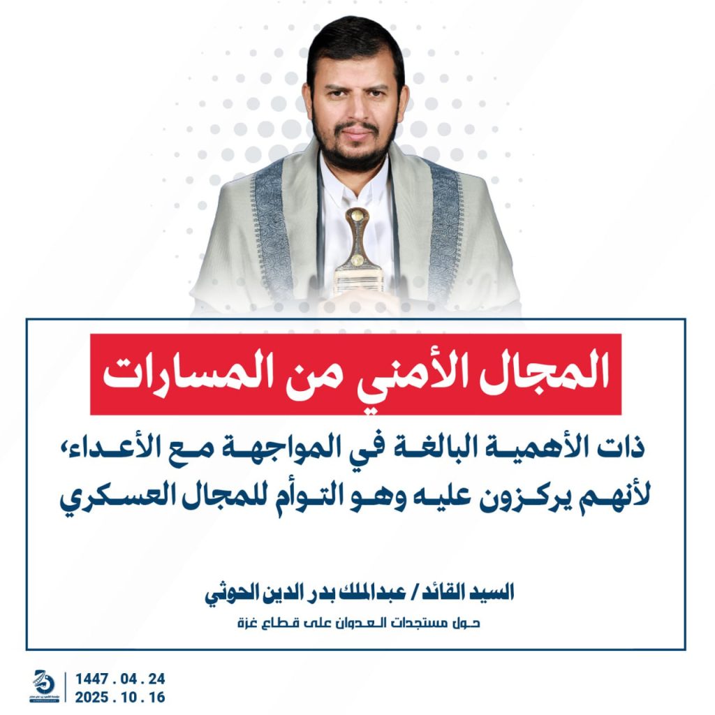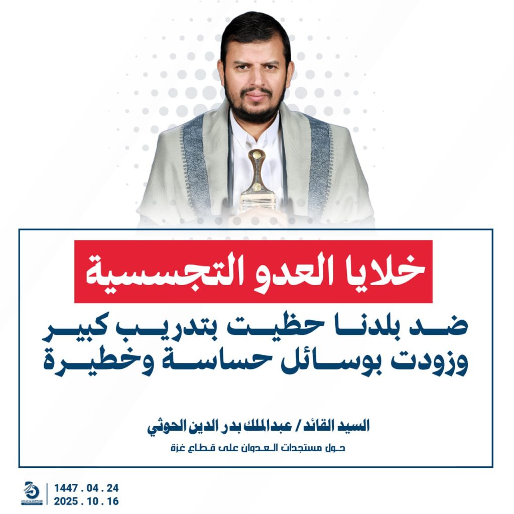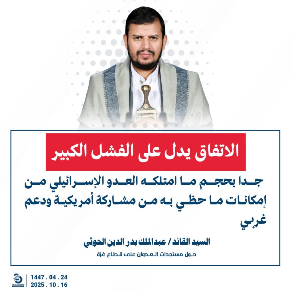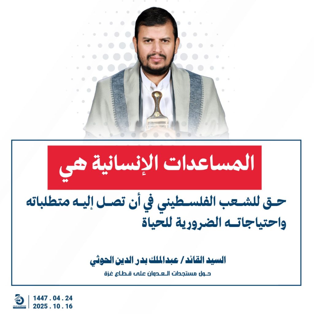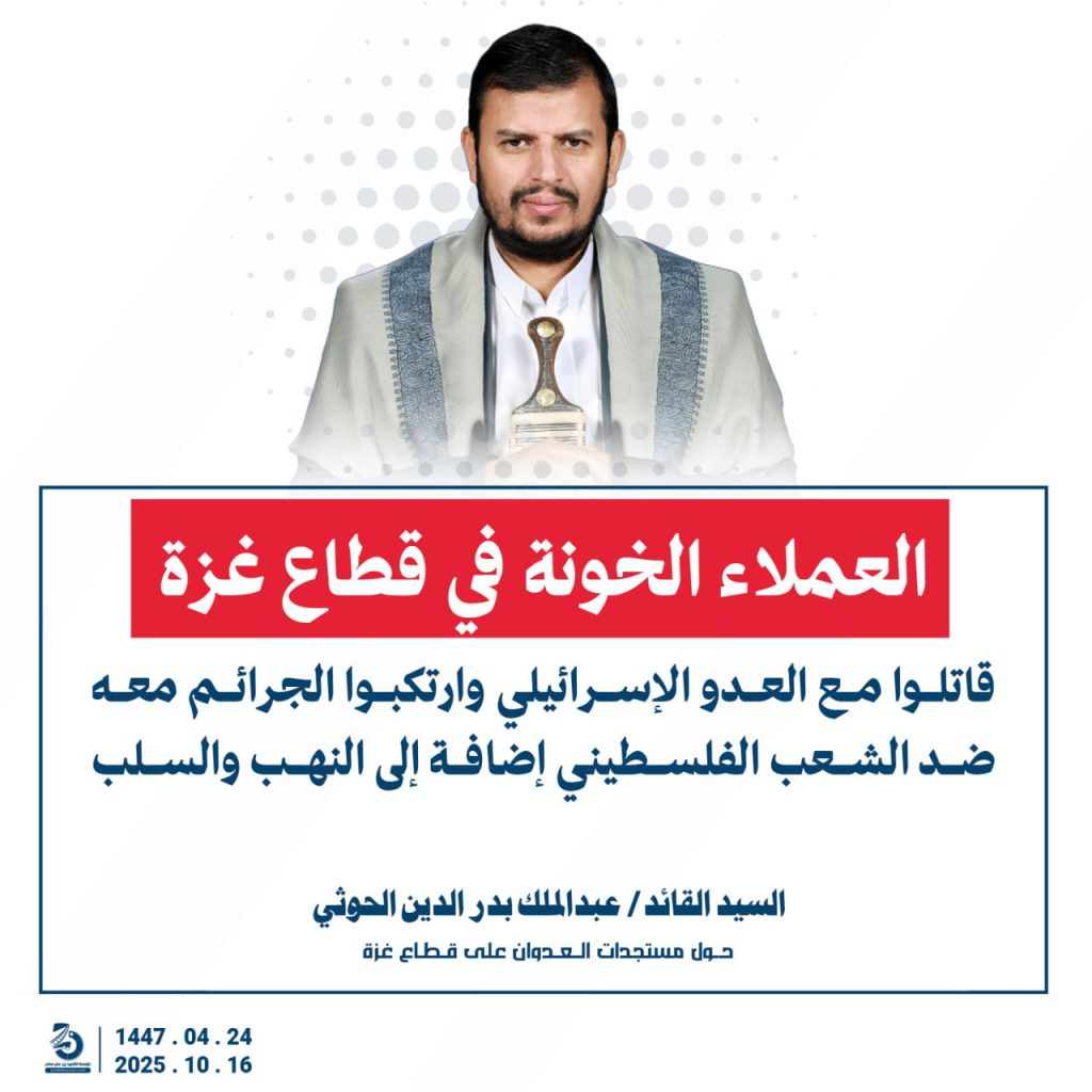 مقتطفات من كلمة السيد القائد عبدالملك بدرالدين الحوثي “حفظه الله”حول المستجدات في قطاع غزة والتطورات الاقليمية والدولية 24 ربيع الآخر 1447هـ | 16 أكتوبر 2025م