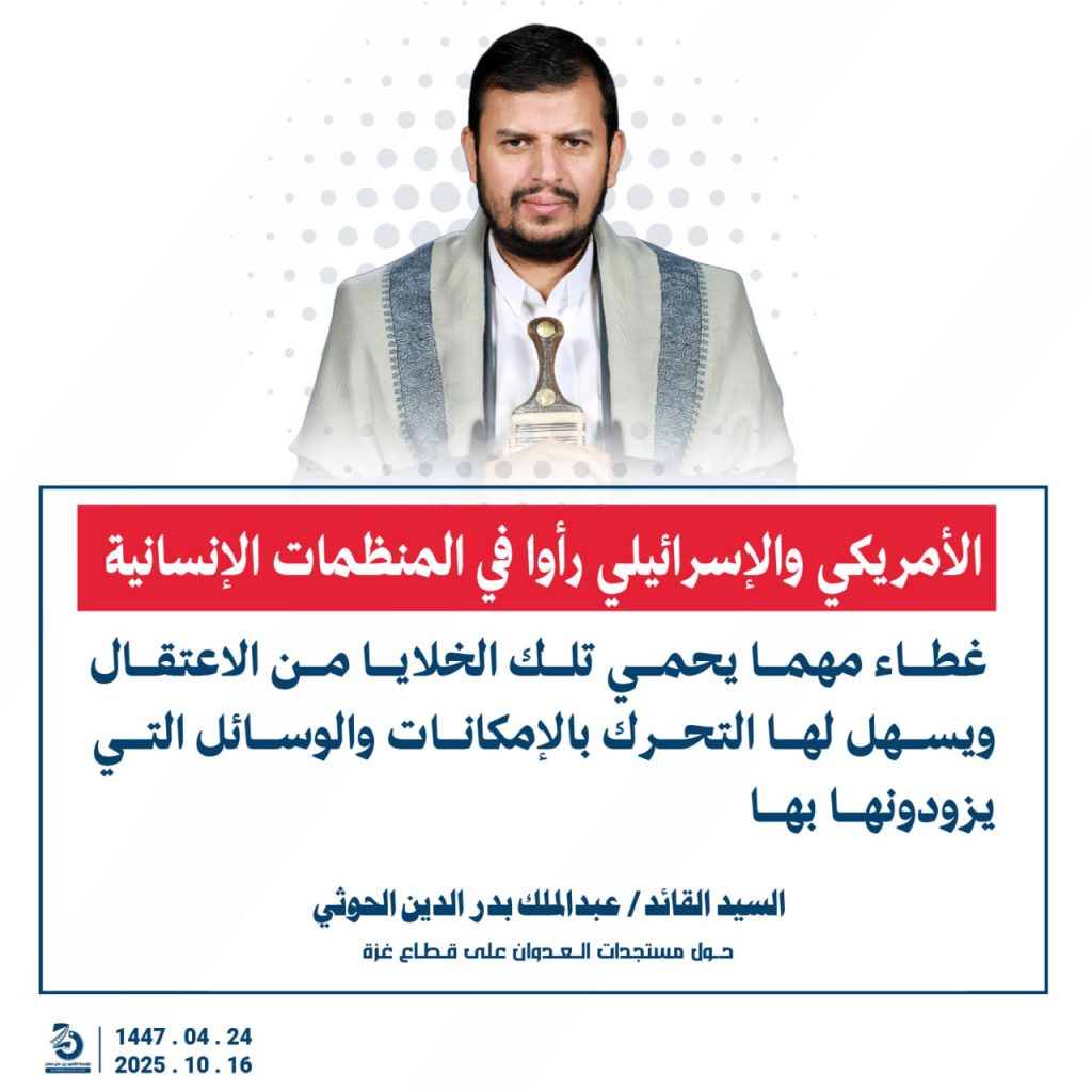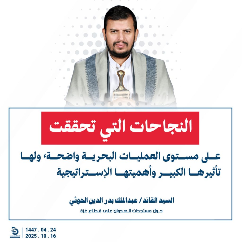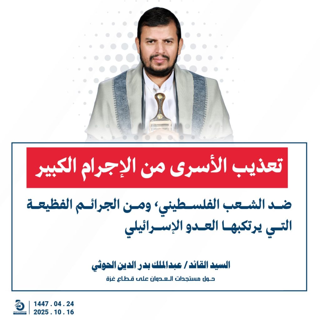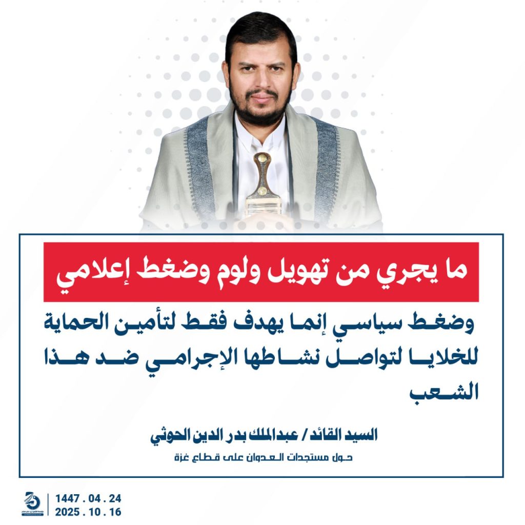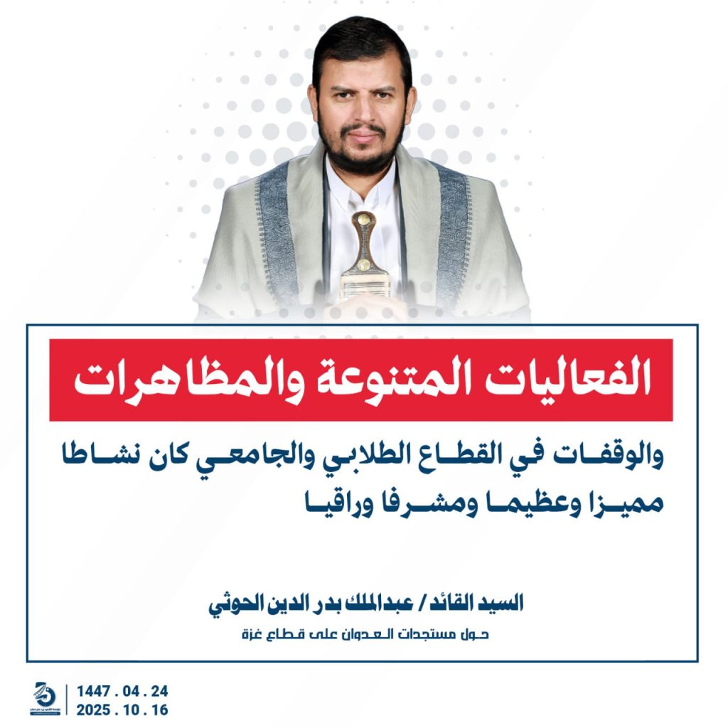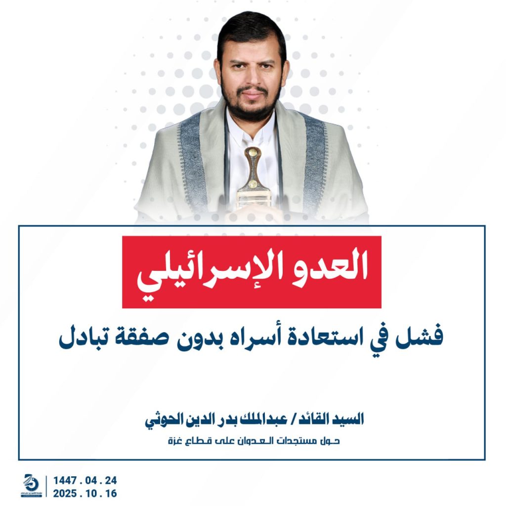 مقتطفات من كلمة السيد القائد عبدالملك بدرالدين الحوثي “حفظه الله”حول المستجدات في قطاع غزة والتطورات الاقليمية والدولية 24 ربيع الآخر 1447هـ | 16 أكتوبر 2025م