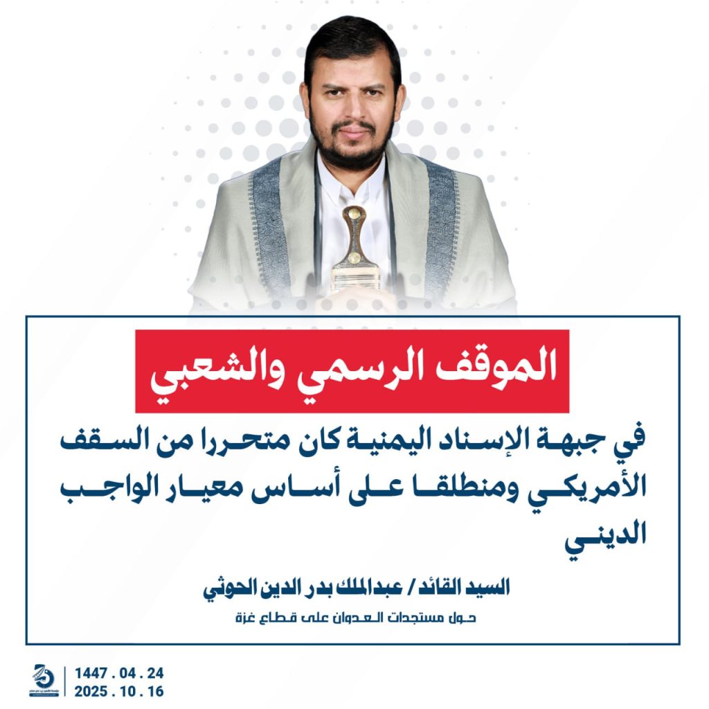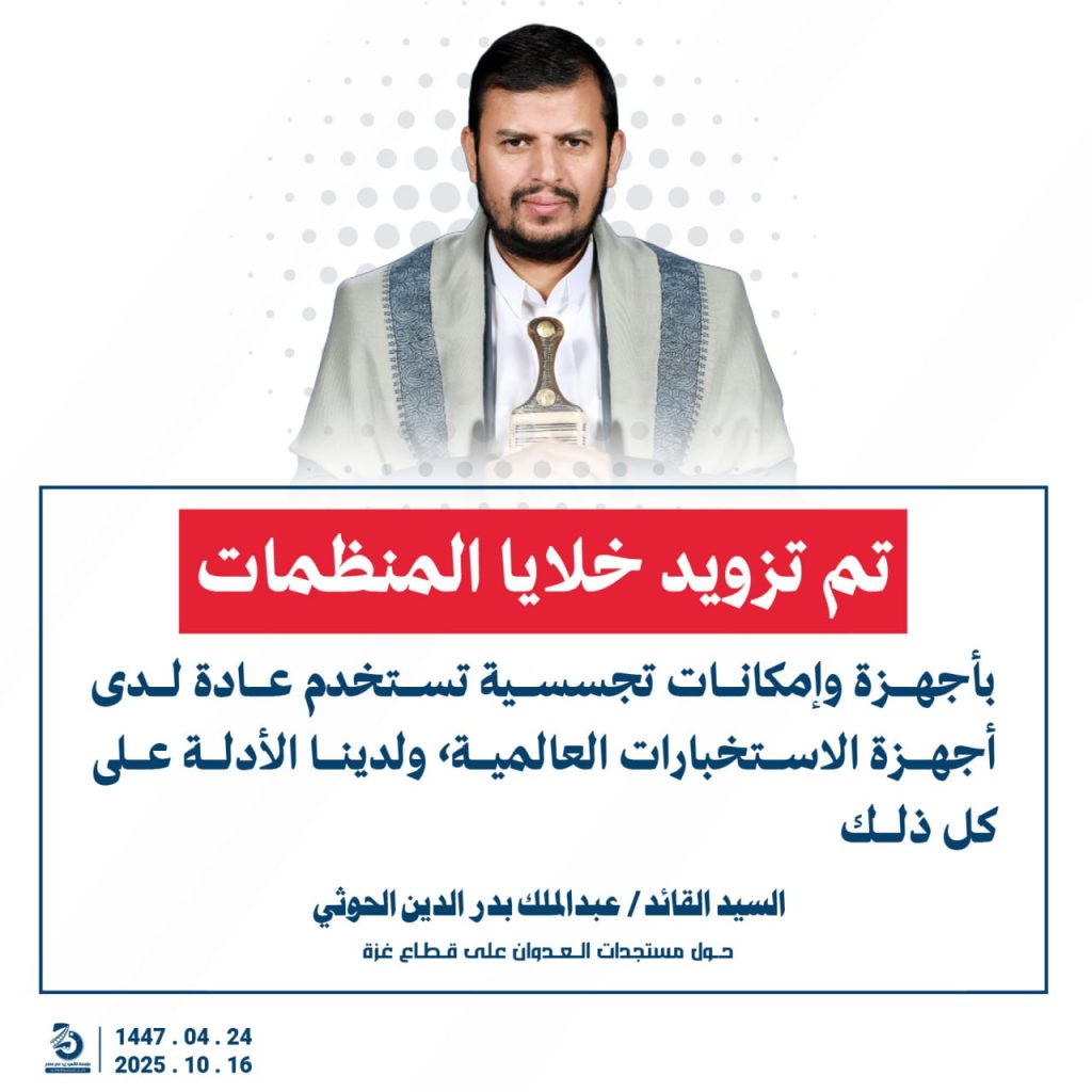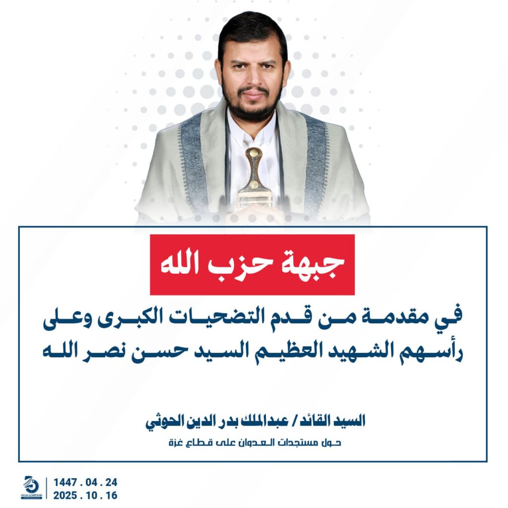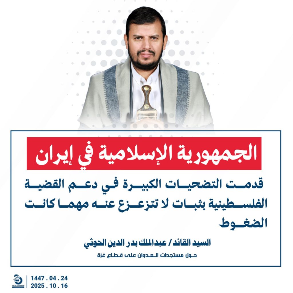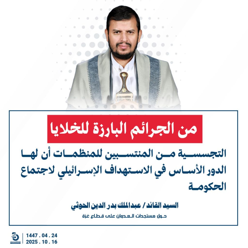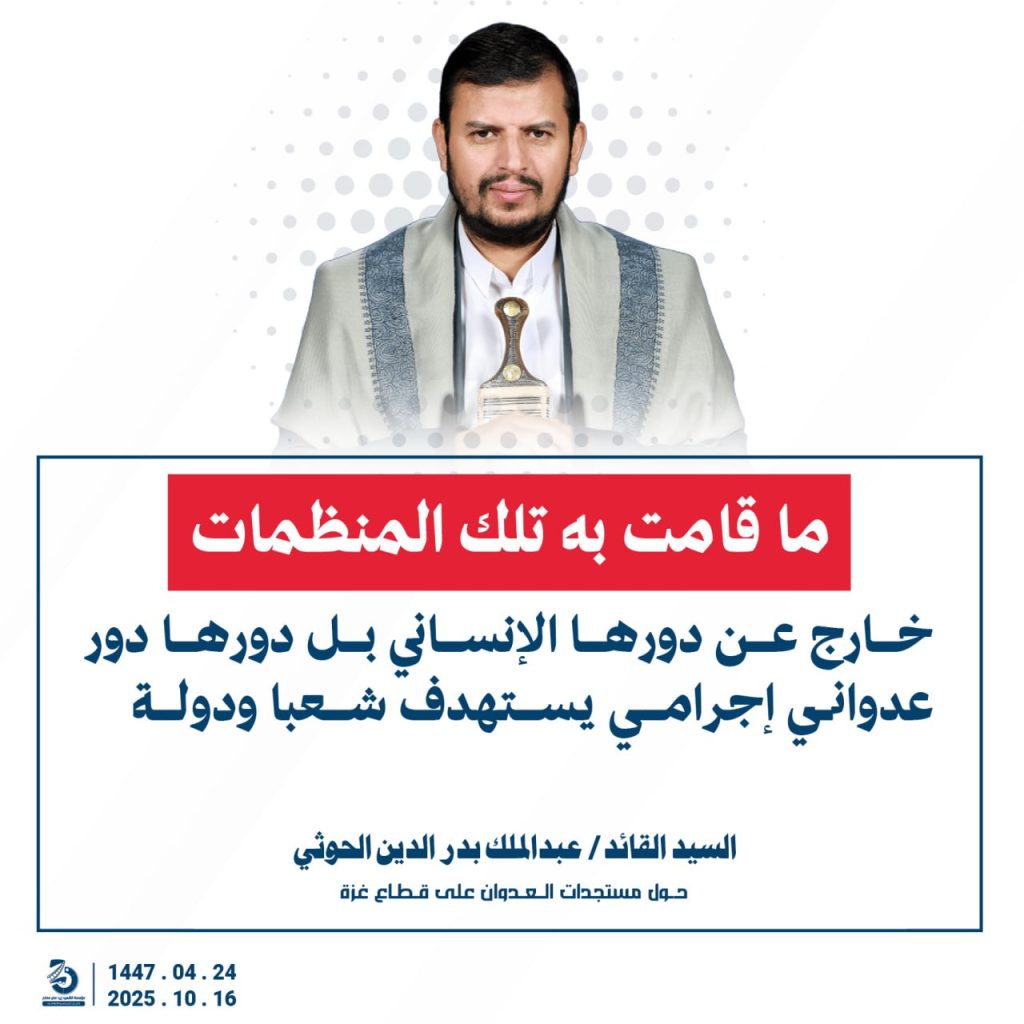 مقتطفات من كلمة السيد القائد عبدالملك بدرالدين الحوثي “حفظه الله”حول المستجدات في قطاع غزة والتطورات الاقليمية والدولية 24 ربيع الآخر 1447هـ | 16 أكتوبر 2025م