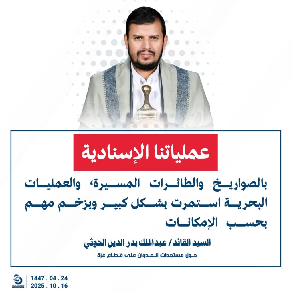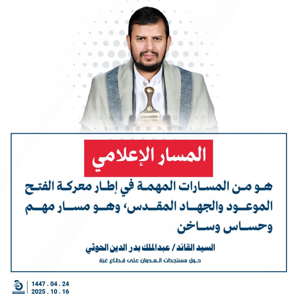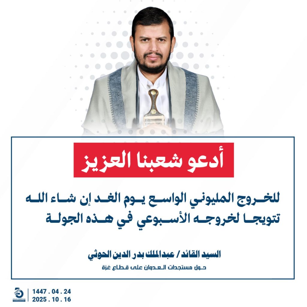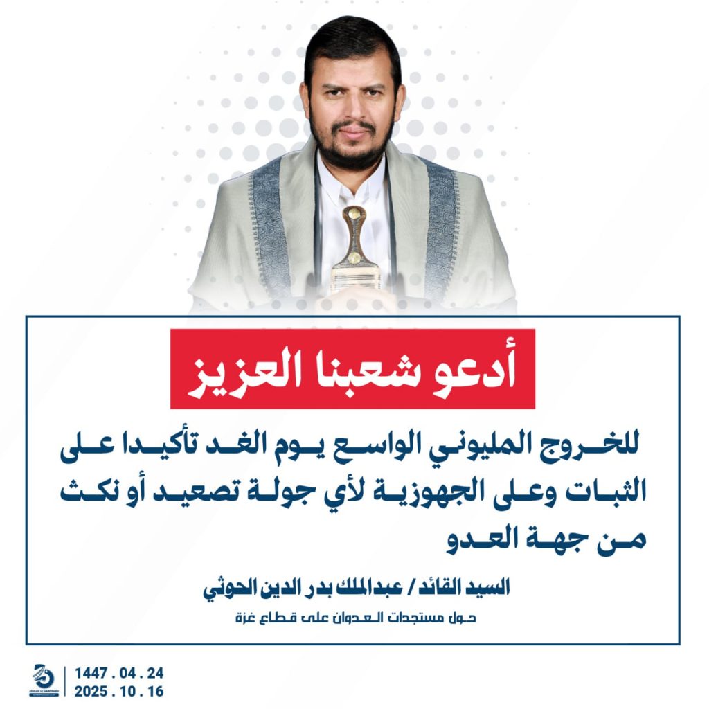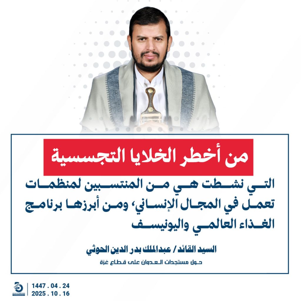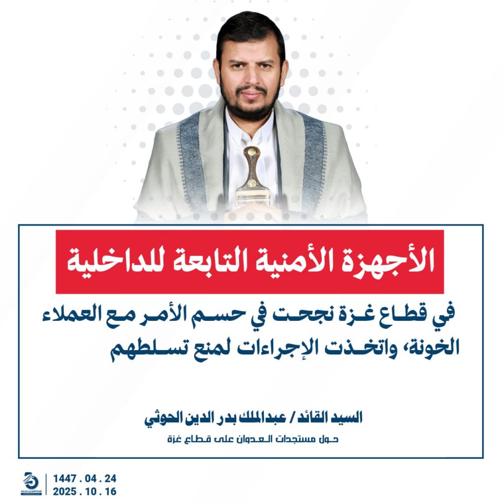 مقتطفات من كلمة السيد القائد عبدالملك بدرالدين الحوثي “حفظه الله”حول المستجدات في قطاع غزة والتطورات الاقليمية والدولية 24 ربيع الآخر 1447هـ | 16 أكتوبر 2025م