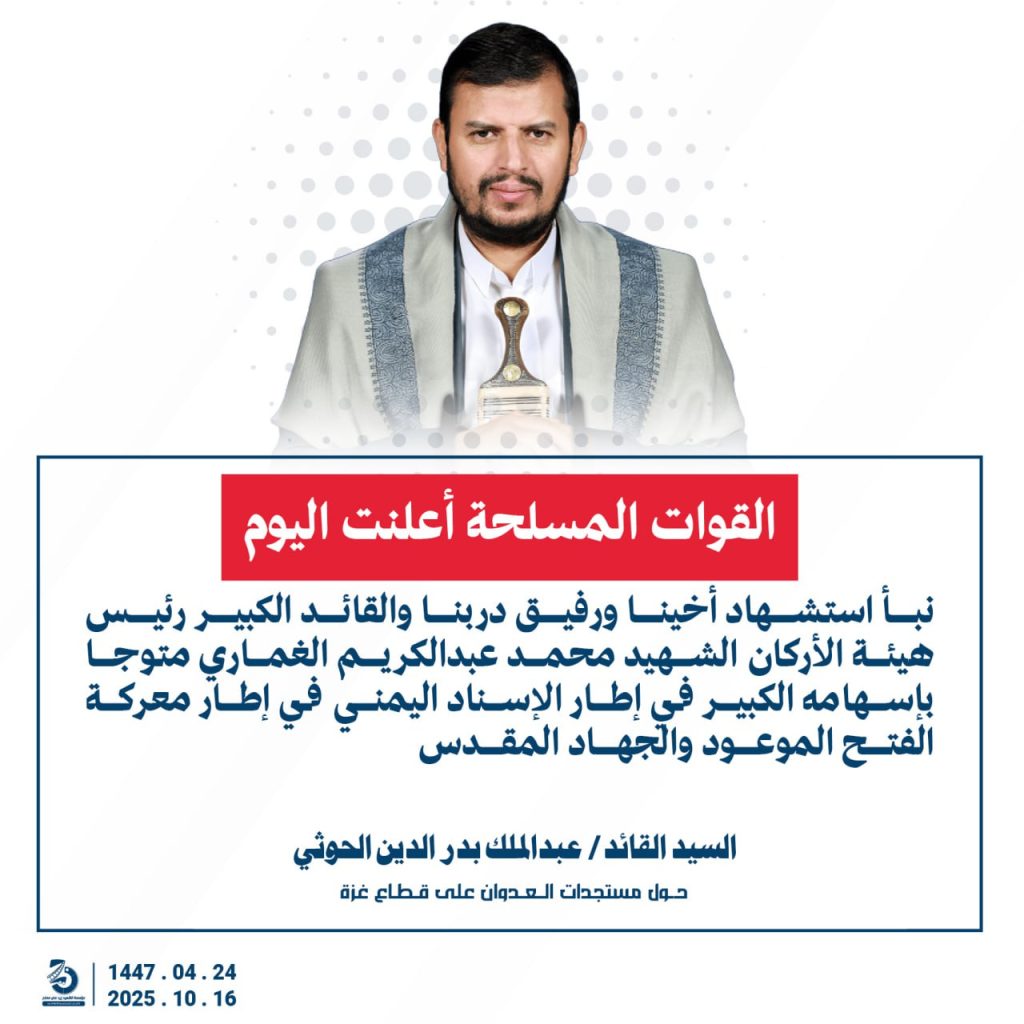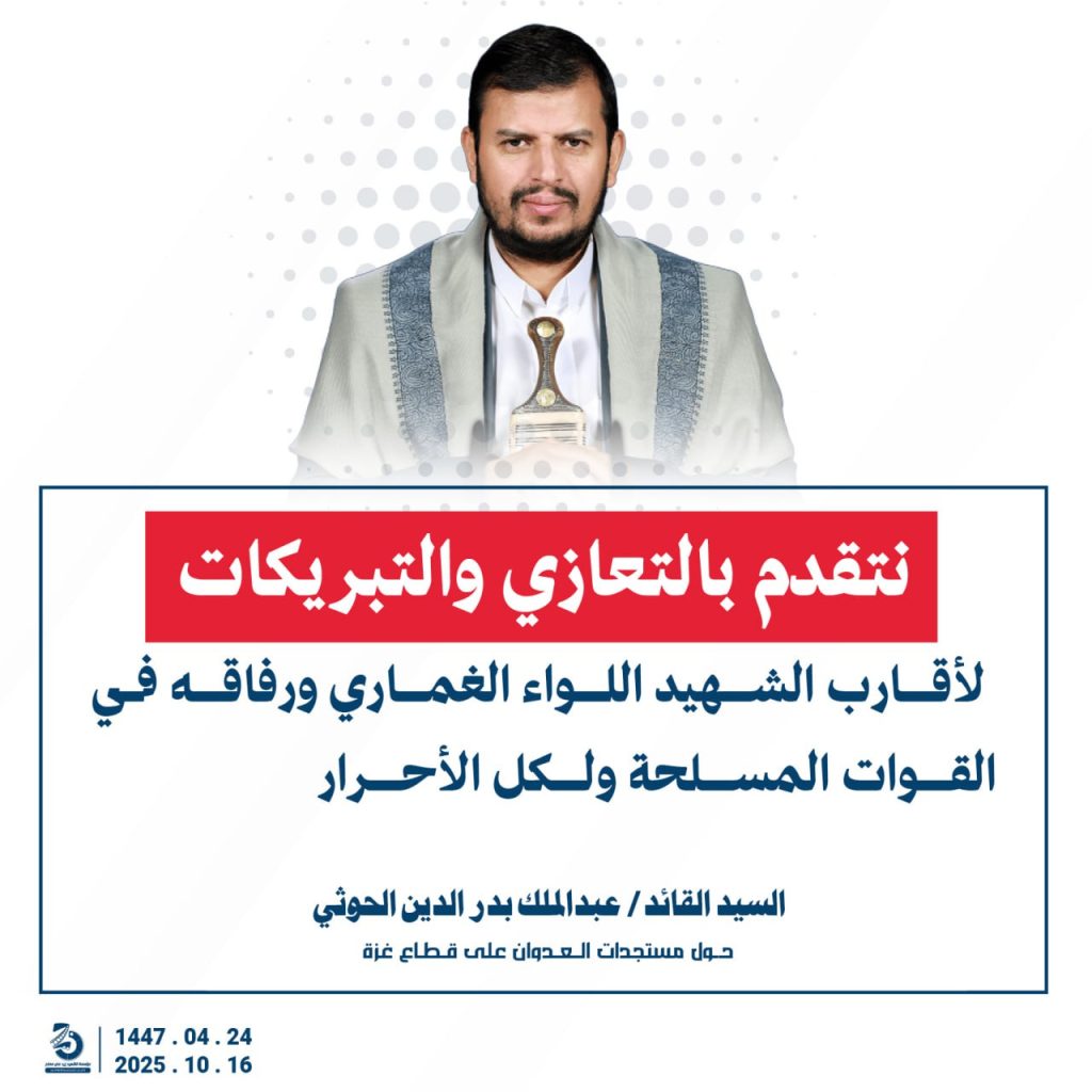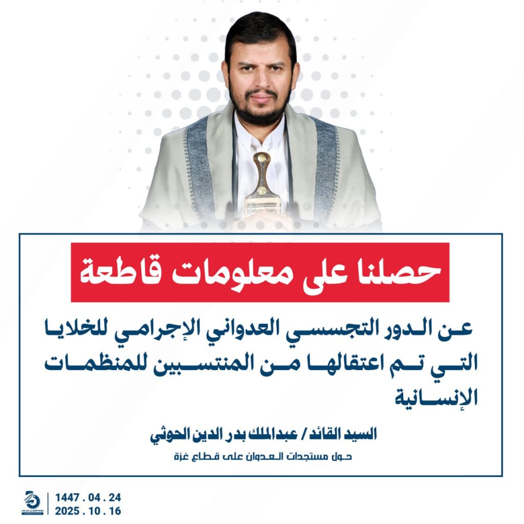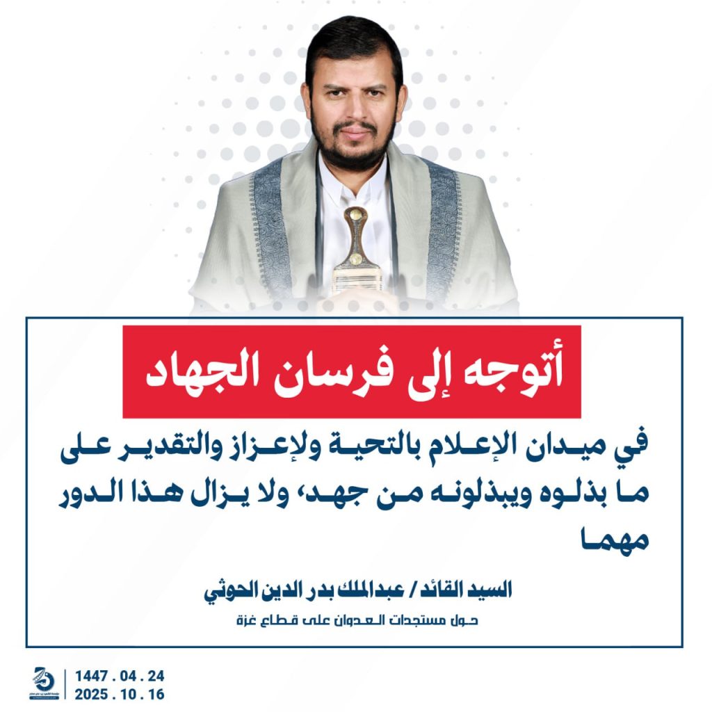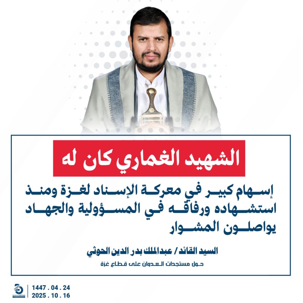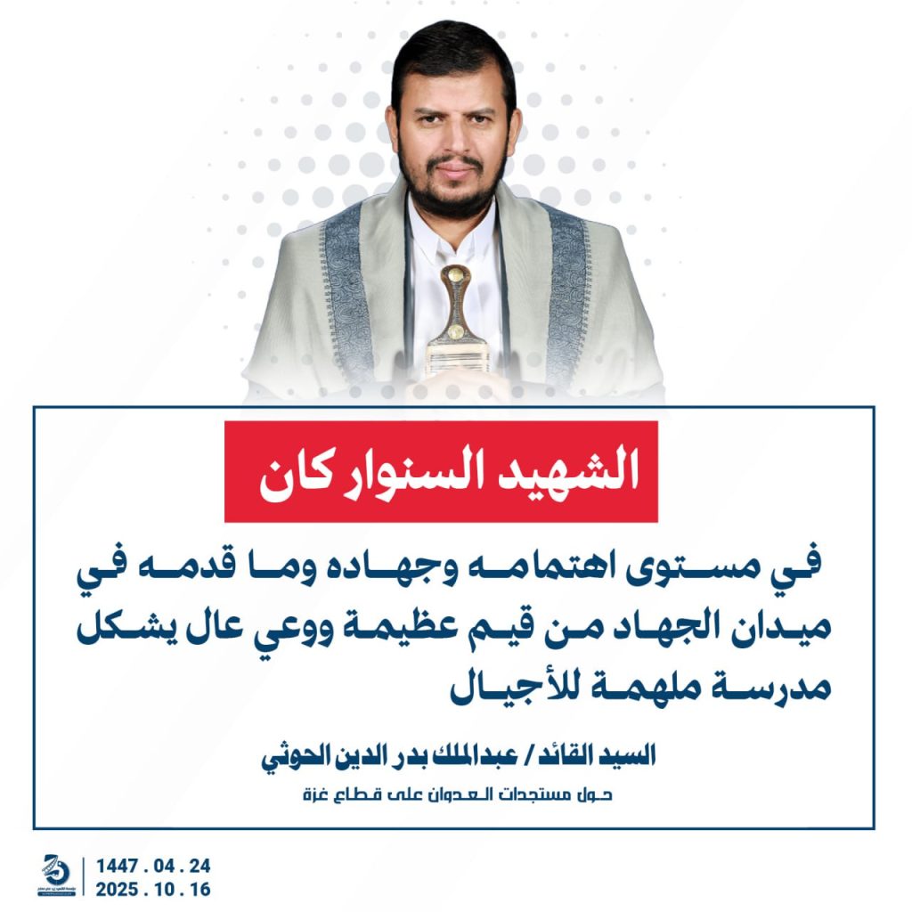 مقتطفات من كلمة السيد القائد عبدالملك بدرالدين الحوثي “حفظه الله”حول المستجدات في قطاع غزة والتطورات الاقليمية والدولية 24 ربيع الآخر 1447هـ | 16 أكتوبر 2025م